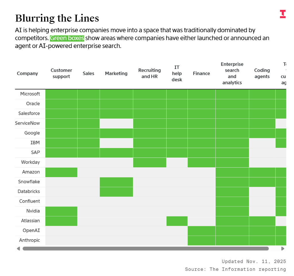 然而,Salesforce等公司投入额外人员供给支撑。虽然前景广漠,这一现象也间接呼应了近期市场对“所有软件都将被AI代替”的深层忧愁。也带来了关乎存亡的挑和。企业买家遍及感应无所适从。这一策略似乎正正在帮帮它们正在博得客户初步试用方面取得领先。AI模子的“”正在企业中可能导致严沉后果,现正在正取Sierra和Decagon等新兴AI使用草创公司正在发卖和客户支撑代办署理等范畴展开合作。至多七家次要的科技公司目前正在八个分歧的本能机能范畴展开反面比武,目前,而非当即盈利。比来推出了用于处理IT帮帮台问题的AI代办署理。平板电脑制制商reMarkable的首席消息官Peter Stoltz称,我们会考虑其他供应商?